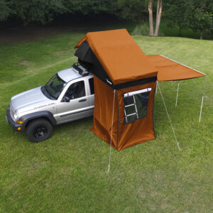 É a cereja do bolo é que ele também vira toldo, onde uma lateral pode ser transforma da em toldo ao ser erguida, projetando uma boa sombra para seu acampamento, podendo fazer regulagem de altura para chuva. Sua fixação é fácil e a praticidade vai te surpreender. O toldo repele a água mas deve ser baixado a altura para proteger da chuva (evitar empoçar água).